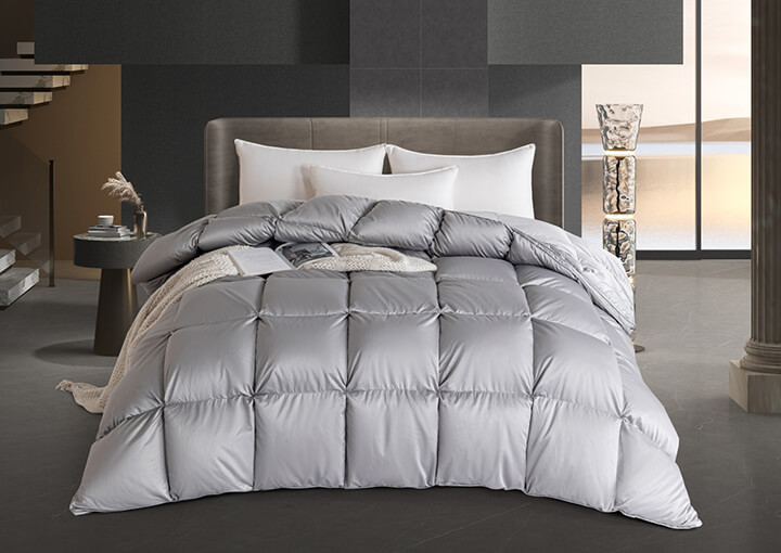 面包格加立衬设计,立体边双绳工艺,外加高达95%的充绒比例,让每个格子都饱满到这个程度,美观又有效地保留身体的热量,品质感拉满,满足您对羽绒被的需求。